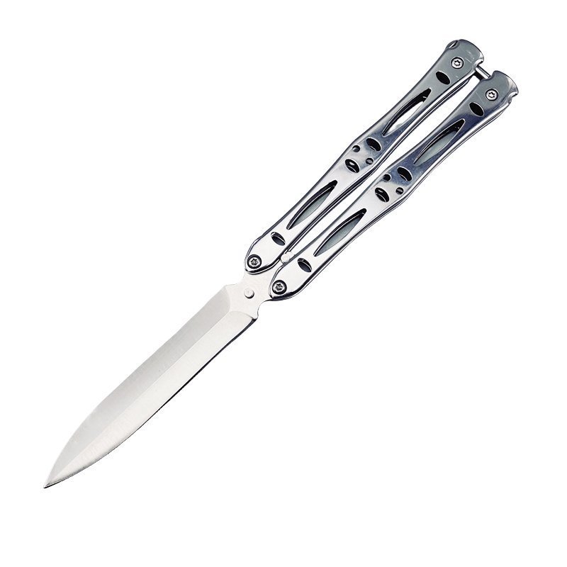 Dieses Balisong ist scharf und hat jede Menge Charakter. Die Edelstahlklinge misst insgesamt 9 Zoll und ist perfekt für den täglichen Gebrauch. Der Riegel verriegelt die Griffe sowohl in der offenen als auch in der geschlossenen Position, um ein versehentliches Öffnen oder Schließen zu verhindern. Spaßig und leicht für den Einsatz bei Tricks/Flips.
