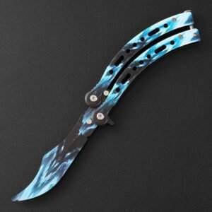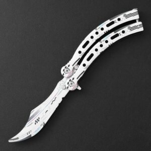 Perfektionieren Sie Ihre Flip-Moves mit Stil mit unserem CSGO Butterfly-Trainermesser oder nutzen Sie es für Kampfsport-Auftritte. Mit diesem farbenfrohen Trainer sehen Sie in jedem Fall großartig aus. Es verfügt über eine 11,6 cm lange Edelstahlklinge in meisterhaftem Design in Fotoqualität. Die Griffe bestehen aus Edelstahl mit passenden Harzeinsätzen. Der farbenfrohe Butterfly-Trainer ist 24,5 cm lang, im geschlossenen Zustand 15 cm lang und verfügt über einen sicheren Griffverschluss.